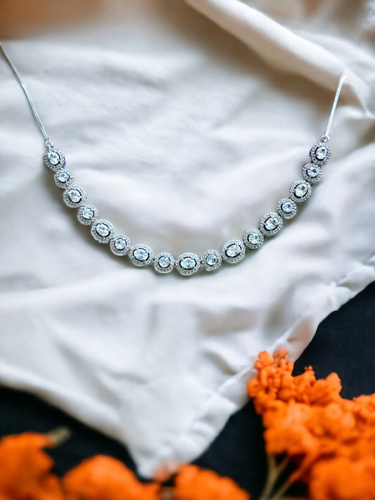 Silver Plated Stone Studded Necklace with Earring