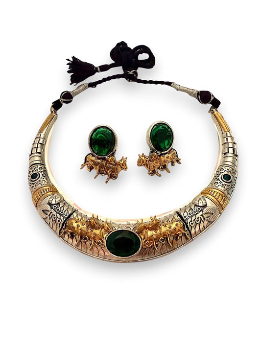 Rebekah Swarna Vahan Tribal Torque Oxidized Necklace with Bull Motif