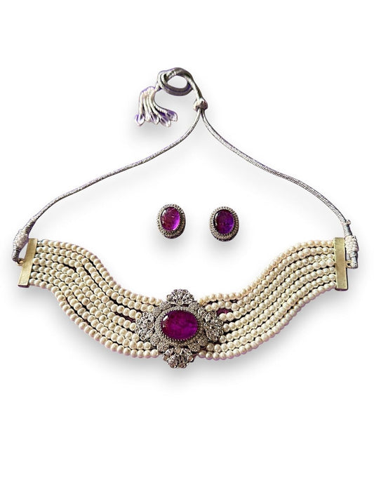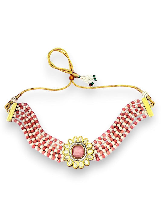 Rebekah Blush Bloom Kundan Pearl Choker Set
