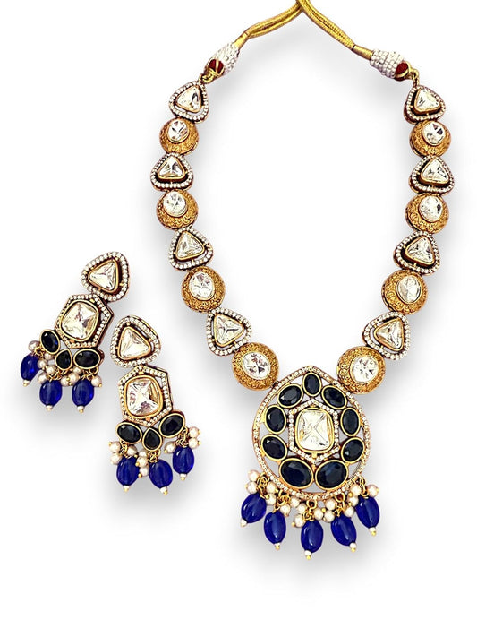 Rebekah Midnight Blue Royalty Kundan Studded Necklace Set