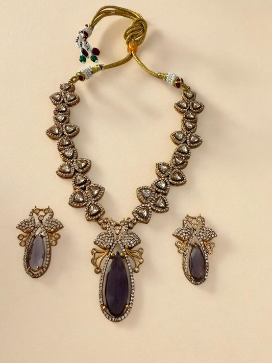 Royal Blue Stone Braided Hasli Set with Peacock Motifs