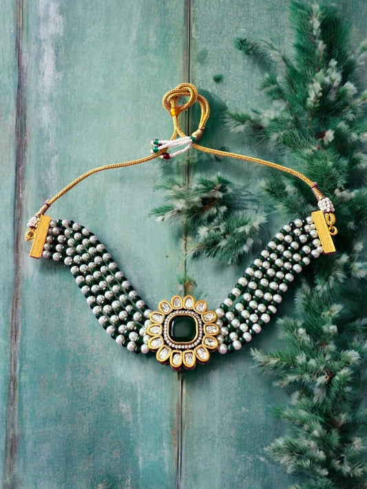 Rebekah Emerald Grace Kundan Pearl Choker Set
