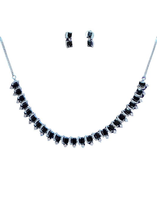 Brilliant Necklace Set with Black Gemstones, Rhodium Plating, 46 cm Length