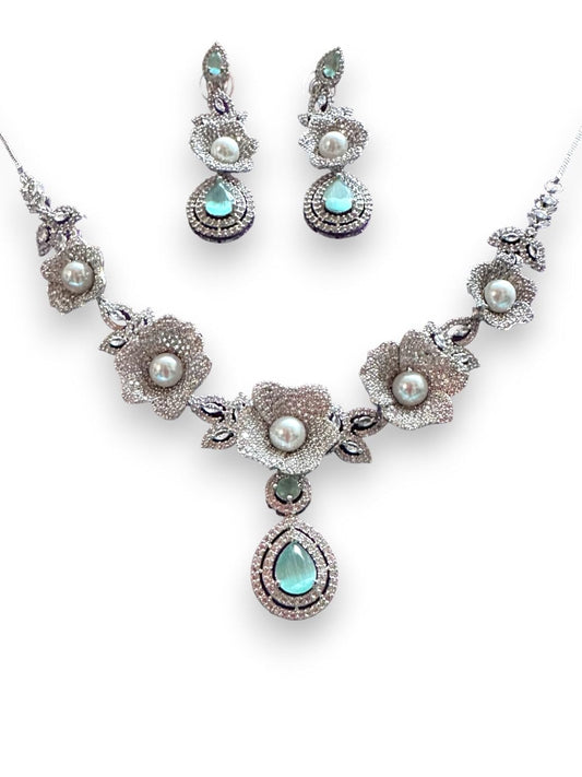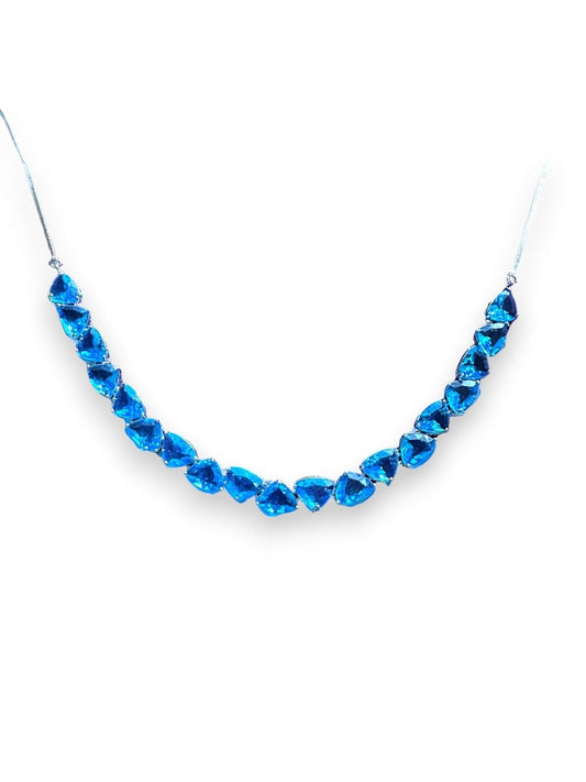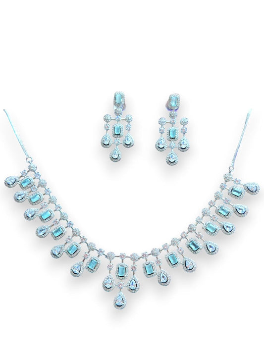 Elegant Aquamarine Gemstone Necklace Set, Rhodium Plated