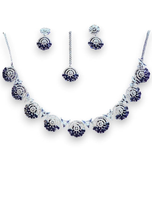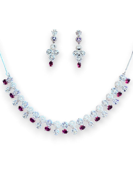 Elegant Cubic Zirconia and Ruby Necklace Set, Dazzling Gemstone Jewellery