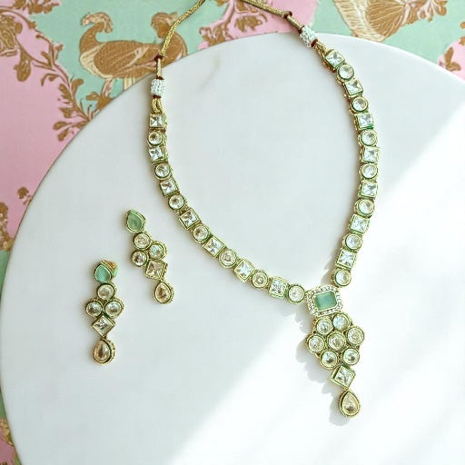 Exquisite Handcrafted Kundan Necklace Set with Mint Green Accents