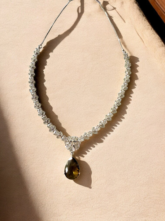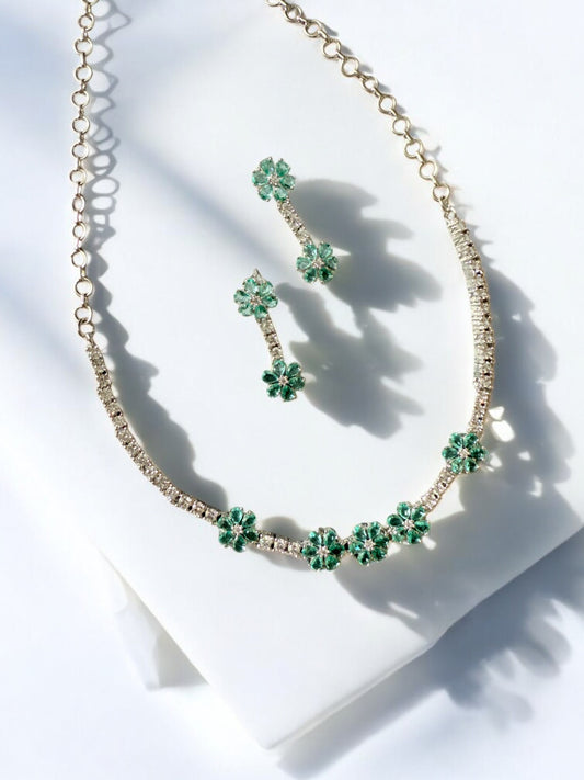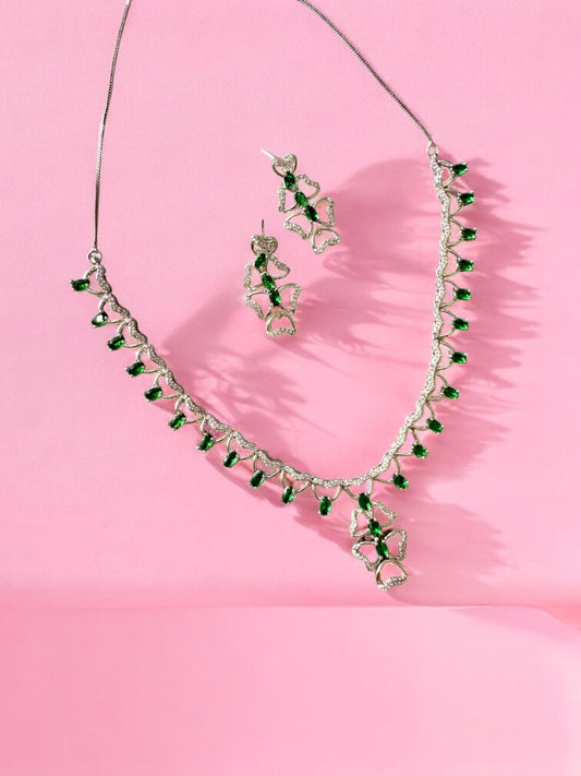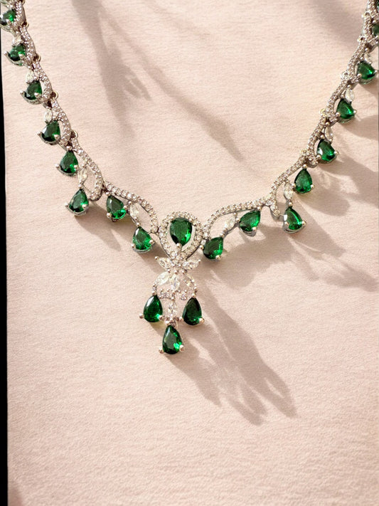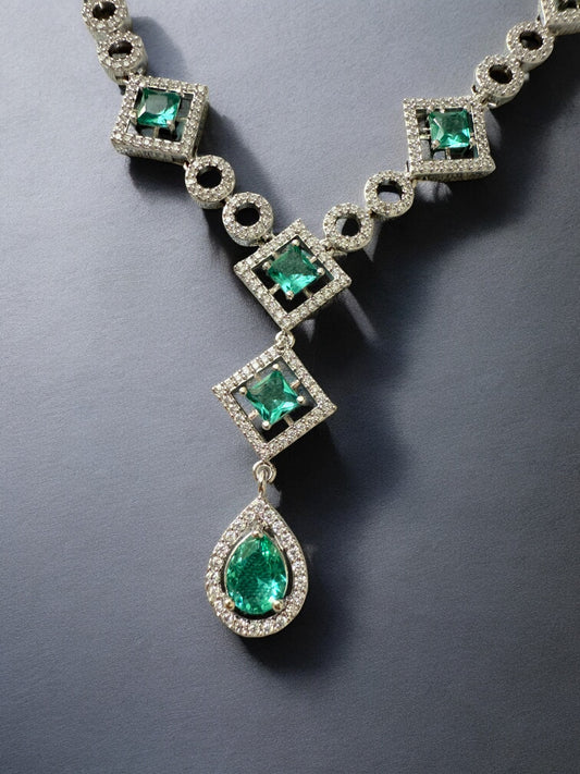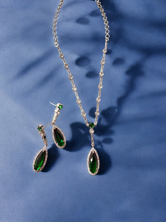 Emerald Green Rhodium Plated Cubic Zircon Necklace Set