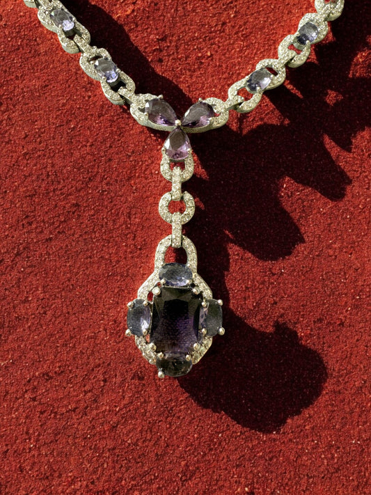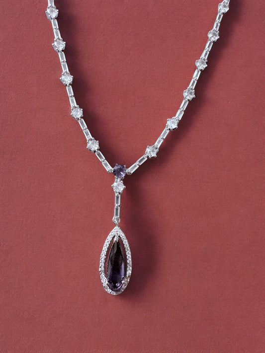 Maroon Rhodium Plated Cubic Zircon Necklace Set