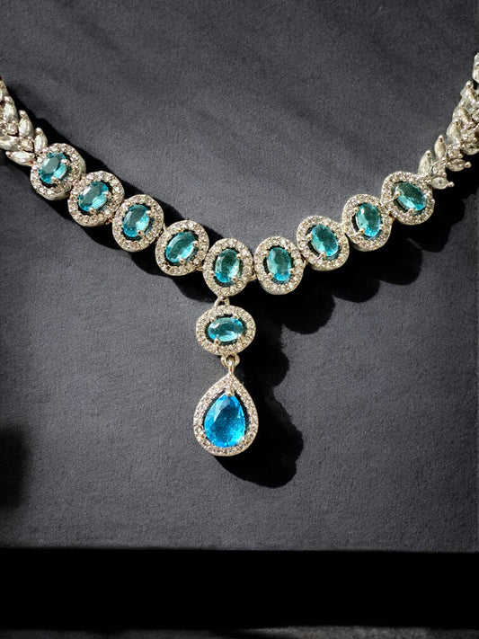 Ocean Blue Rhodium Plated Cubic Zircon Necklace Set