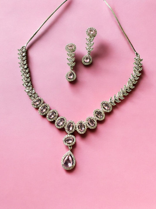 Pink Rhodium Plated Cubic Zircon Necklace Set