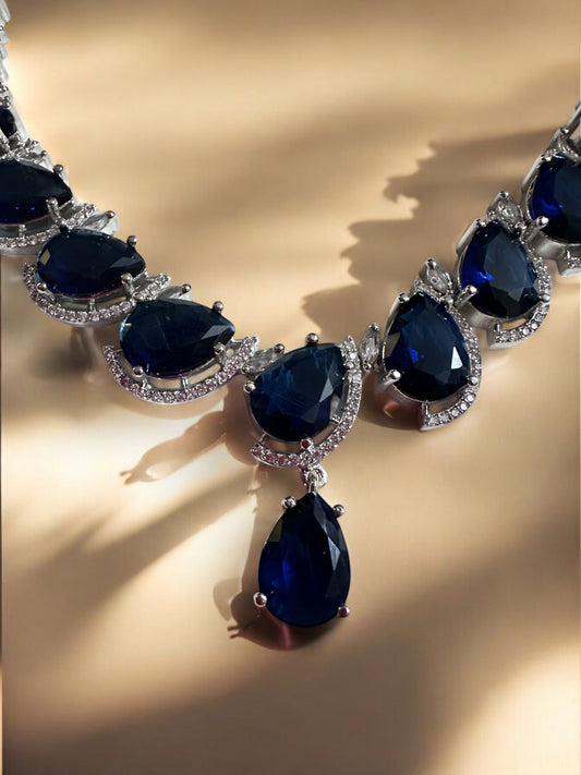 Blue Rhodium Plated Cubic Zircon Necklace Set