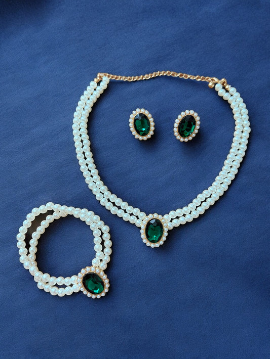 Emarld Green Statement Stone Zircon Pendant Set with Stud Earrings