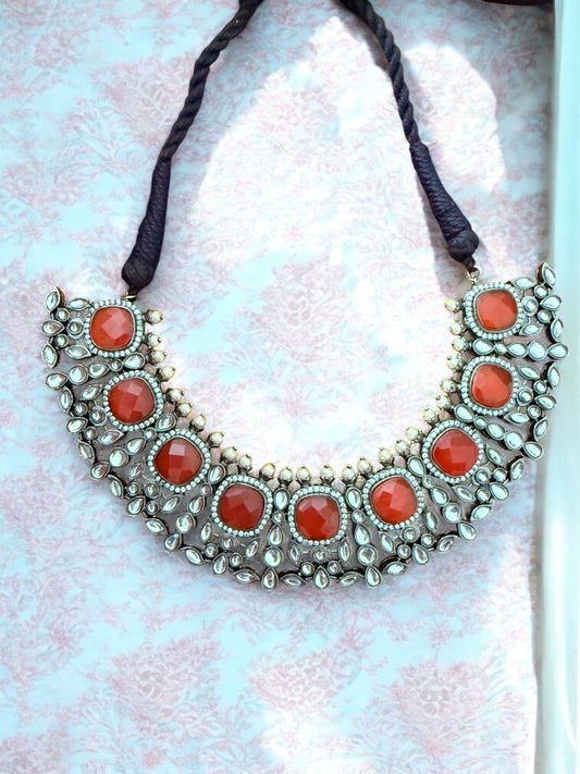 Bold Orange Kundan Antique Choker Necklace set with Pearls