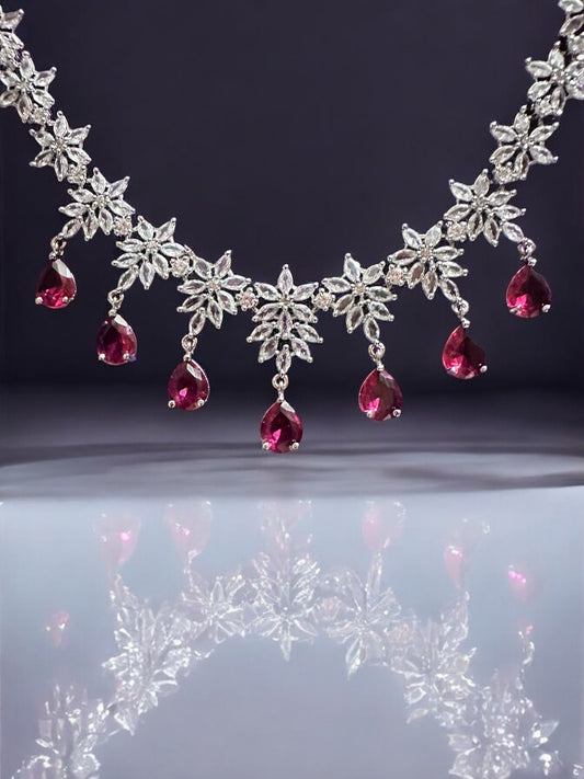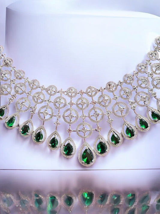 Rhodium Plated Cubic Zirconia Necklace and Earrings Set