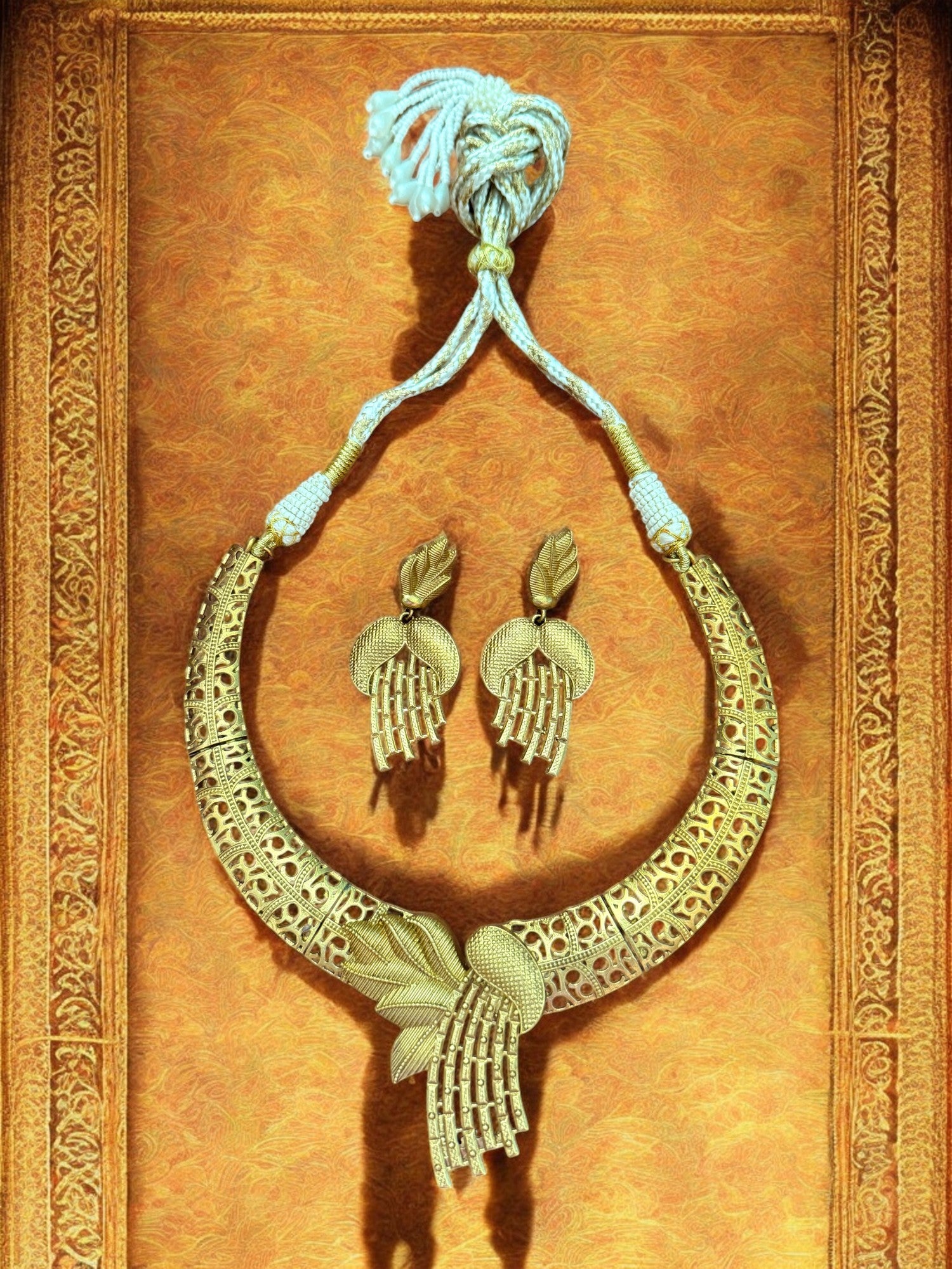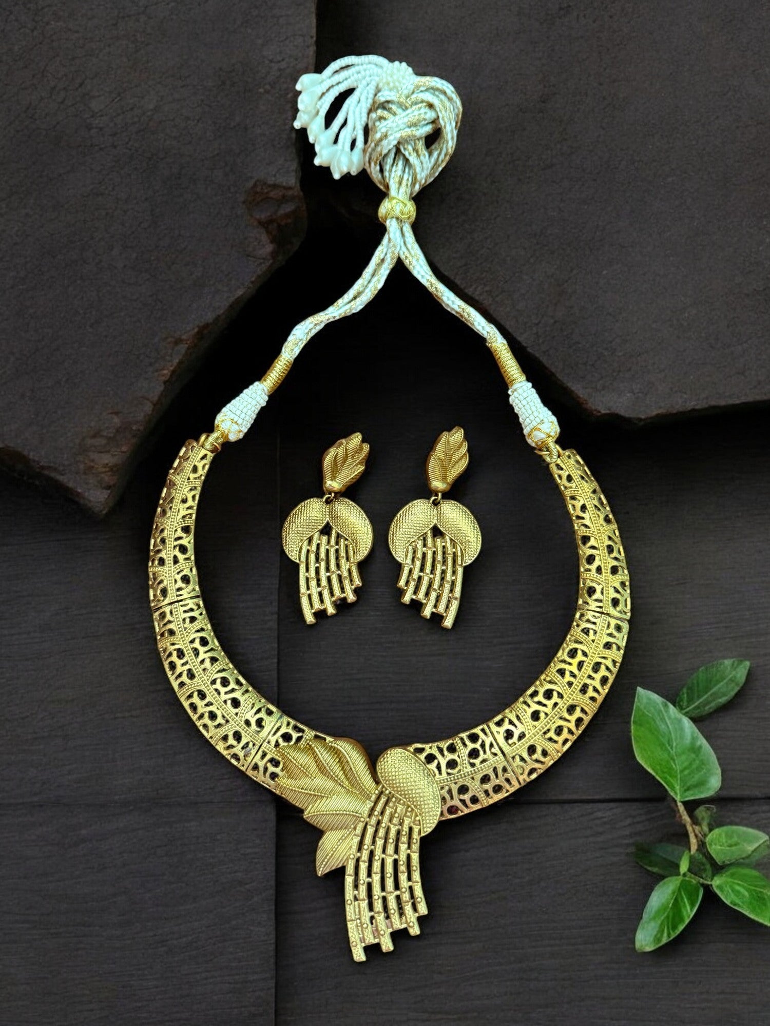 Antique Gold Filigree Hasli Set with Cascading Leaf Motif