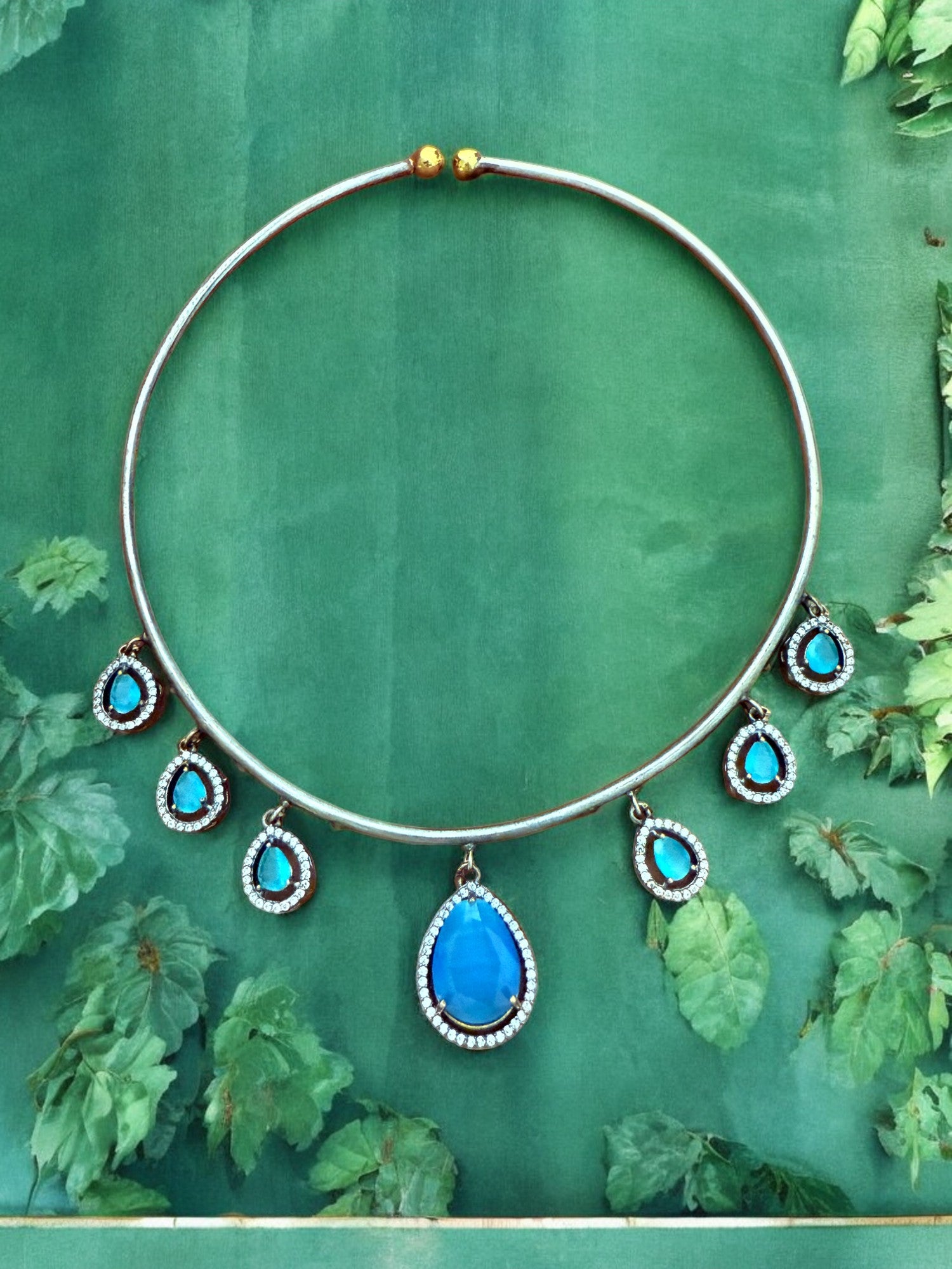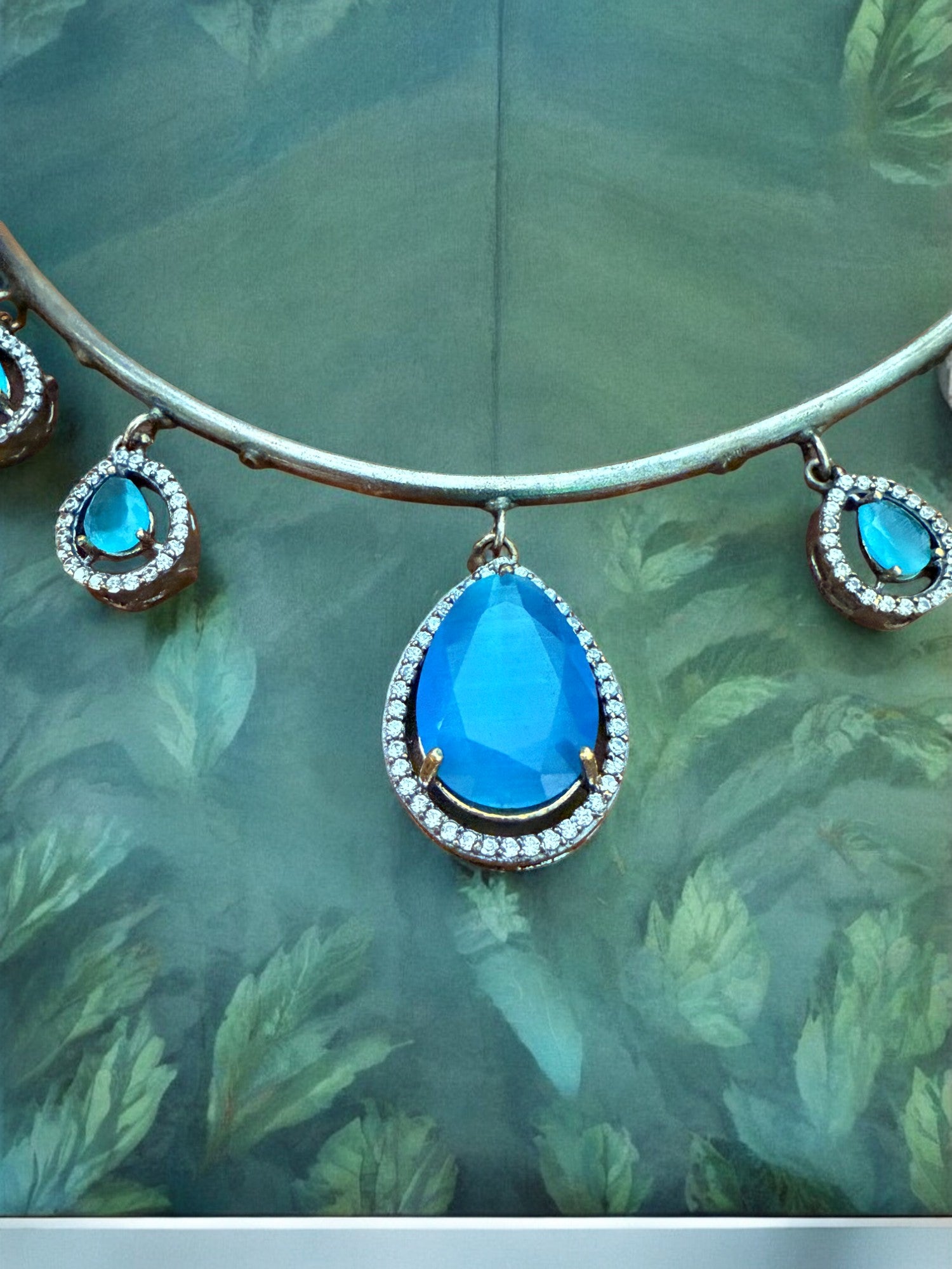 Antique Silver Finish Turquoise Blue Teardrop Hasli Set with Stud Earrings