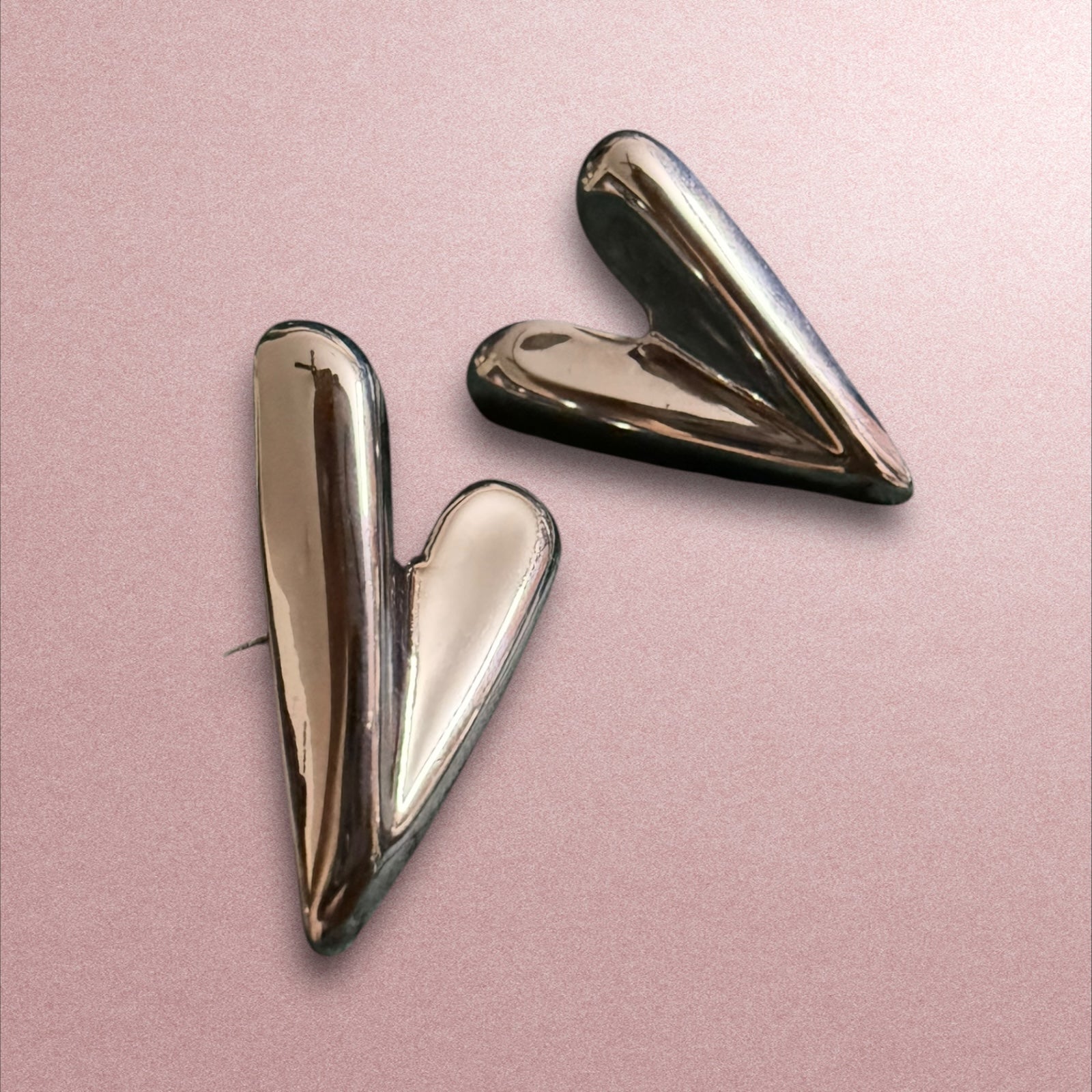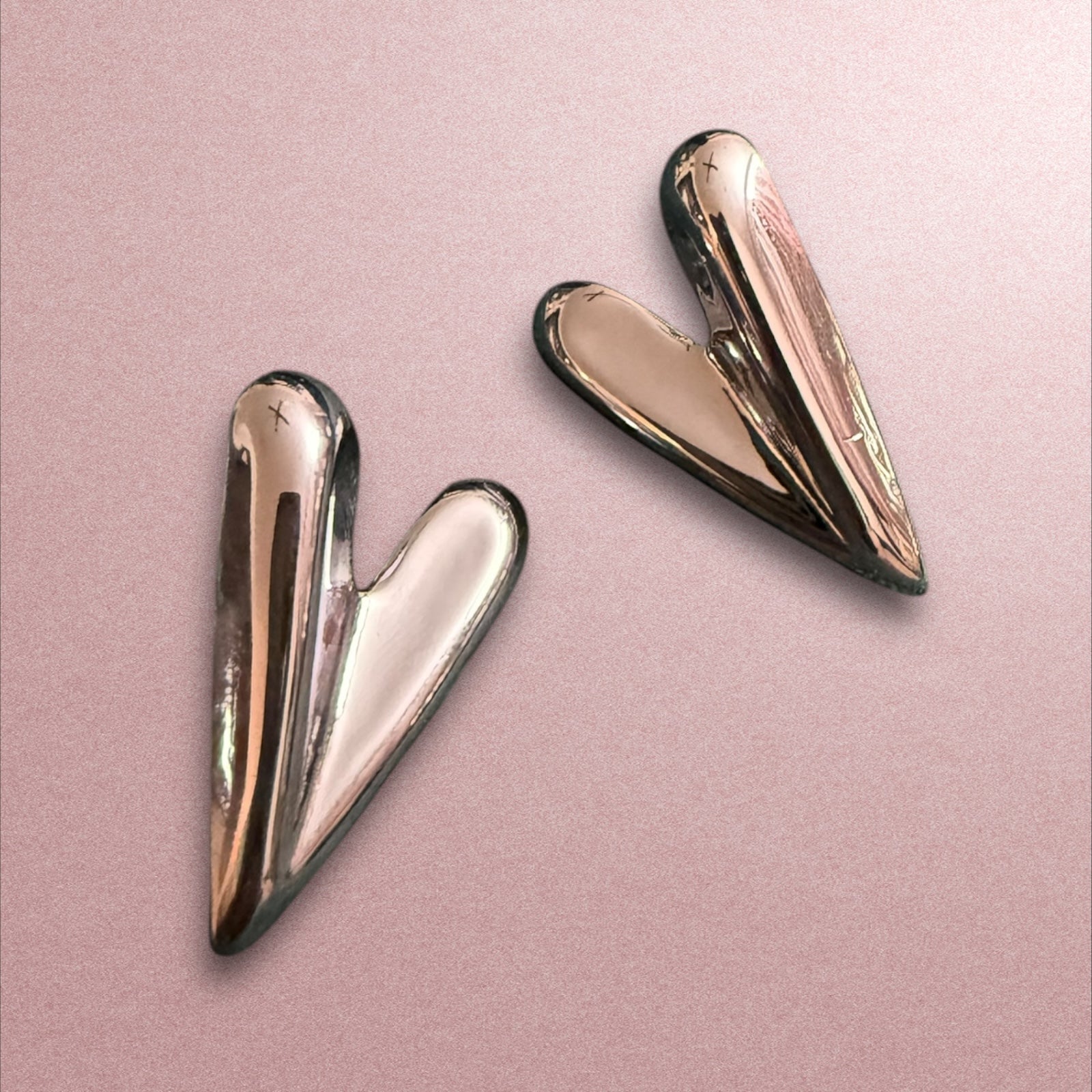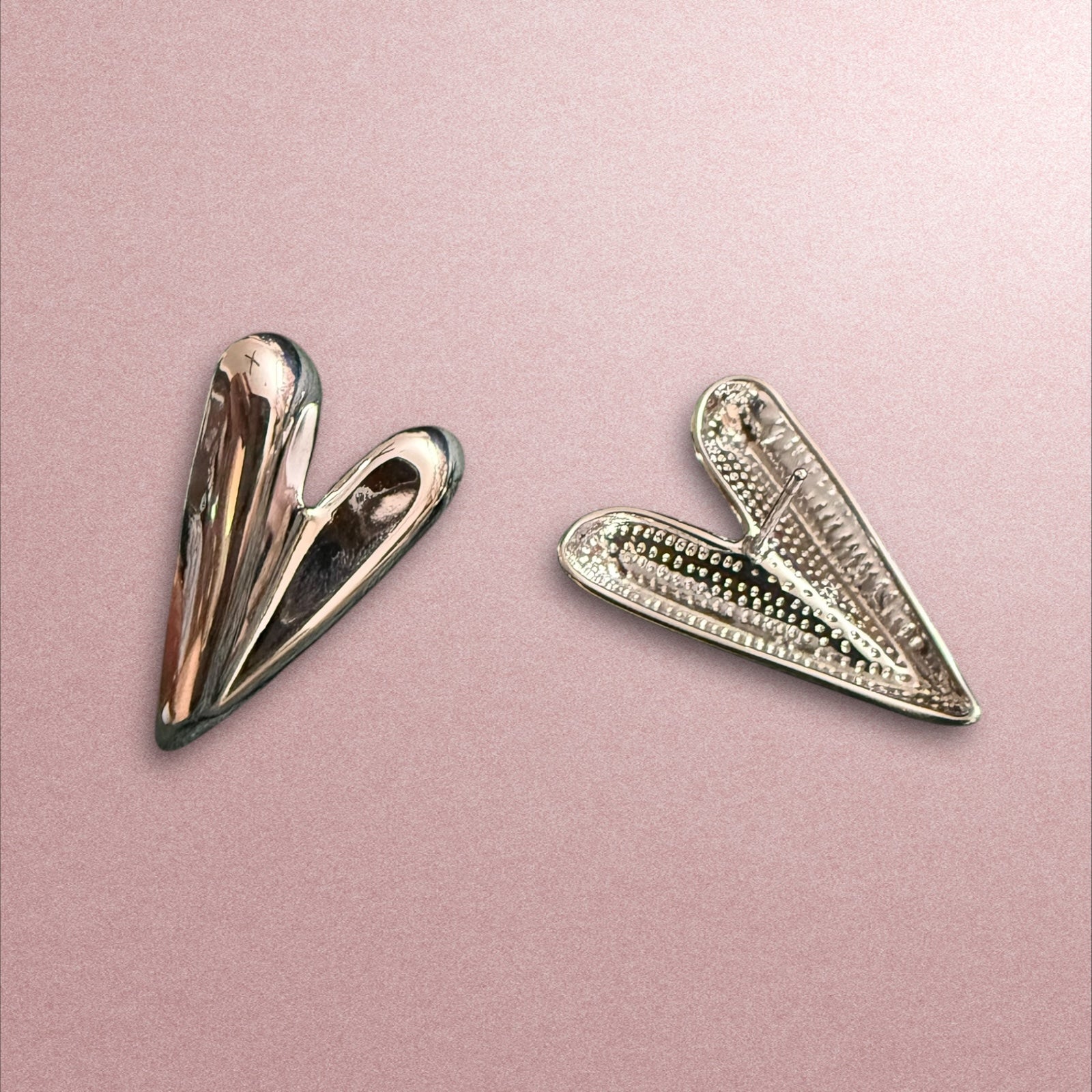 Elevate your style with these uniquely sculpted heart-shaped earrings. Crafted in a sleek metallic finish, these asymmetrical designs exude contemporary elegance with a romantic twist. Perfect for making a bold yet sophisticated statement.