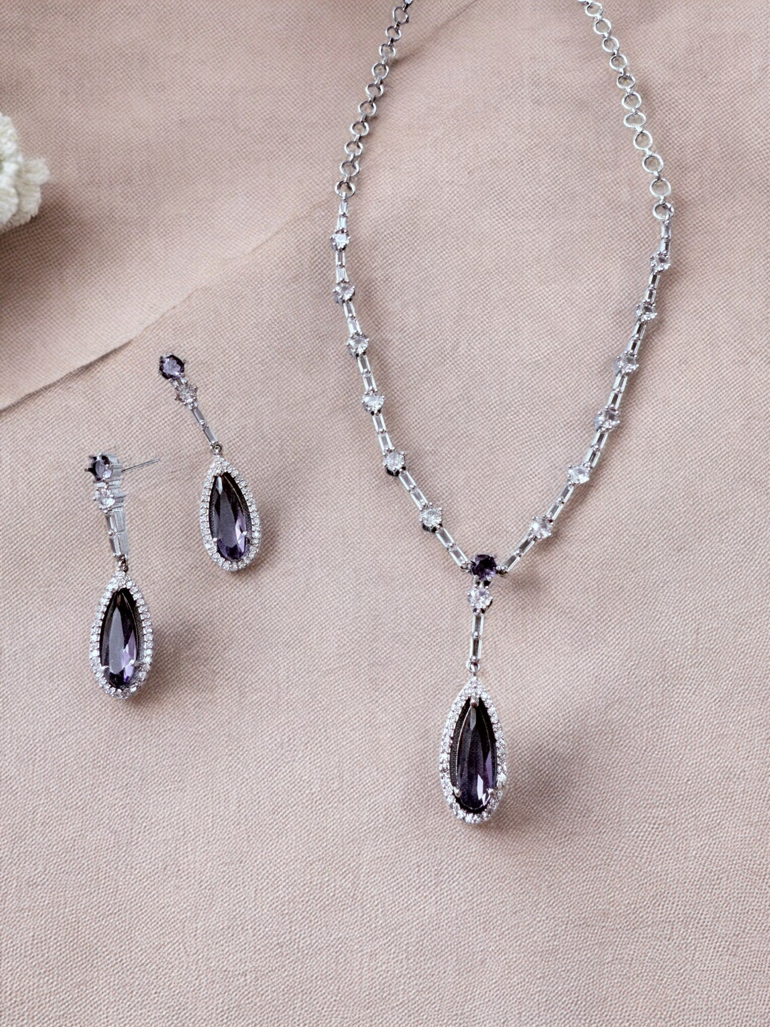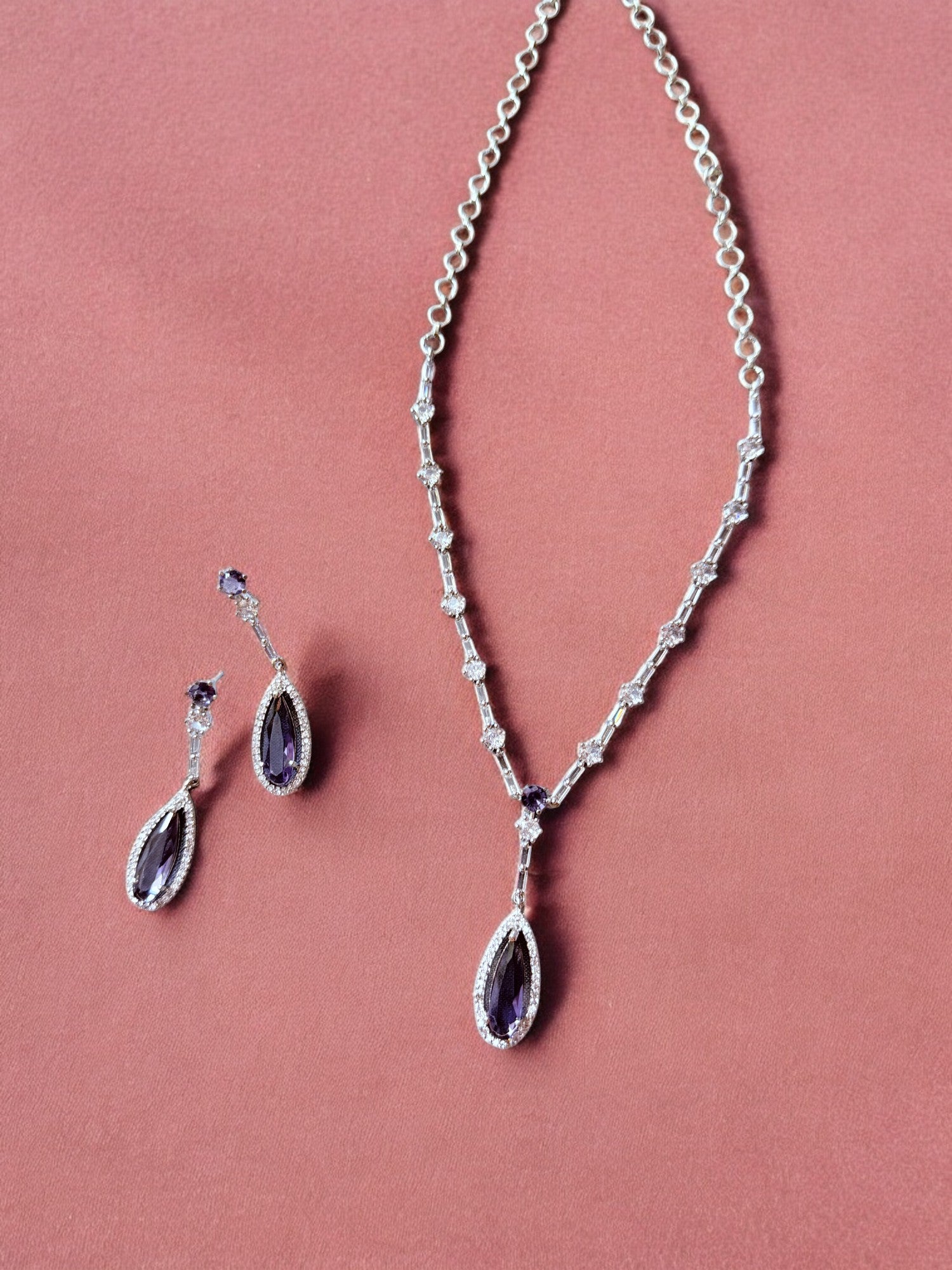 Classic Stone-Studded Necklace Set with Matching Earrings