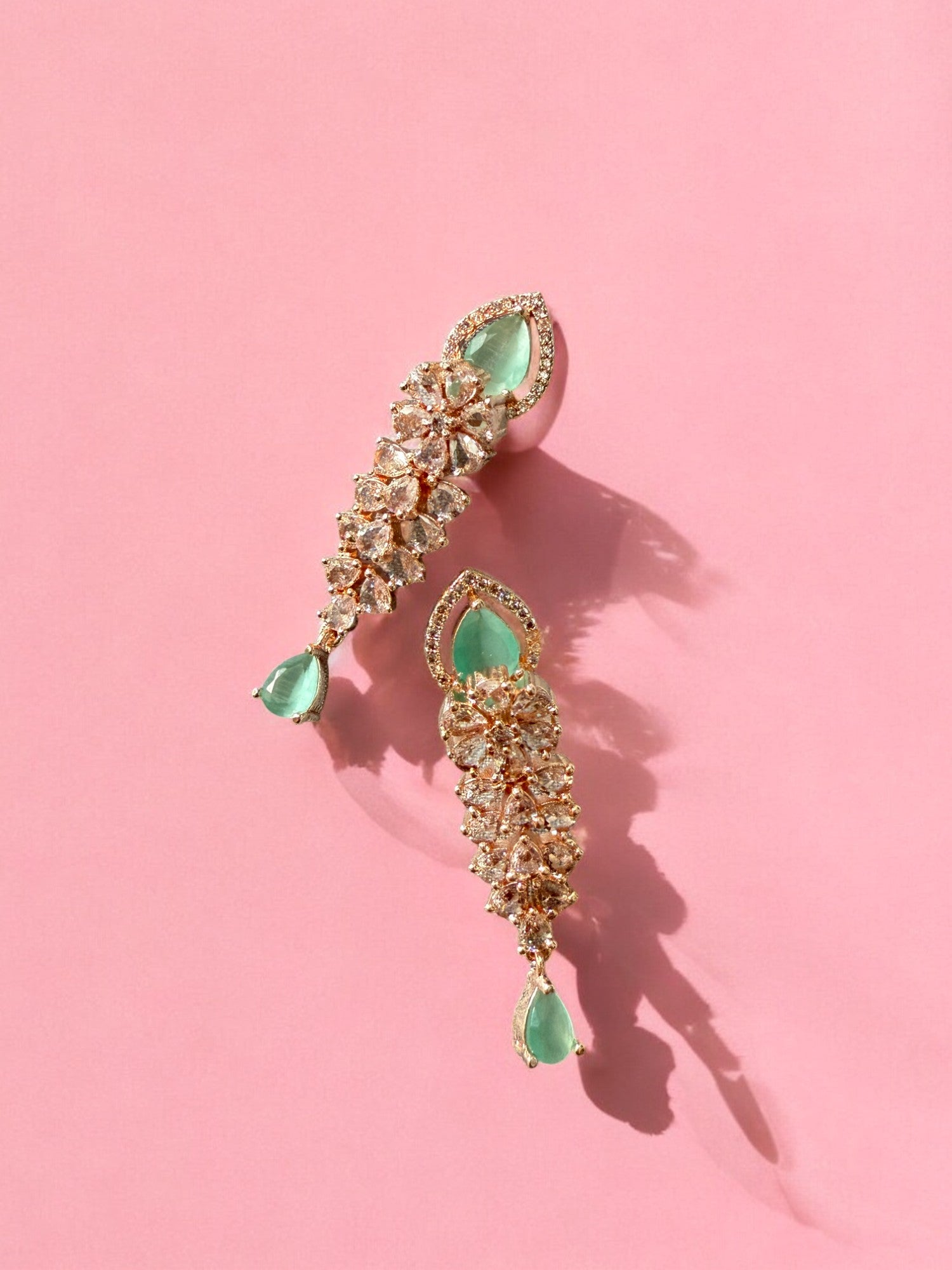 Gold Plated Mint Stone-Studded Necklace Set with Matching Earrings