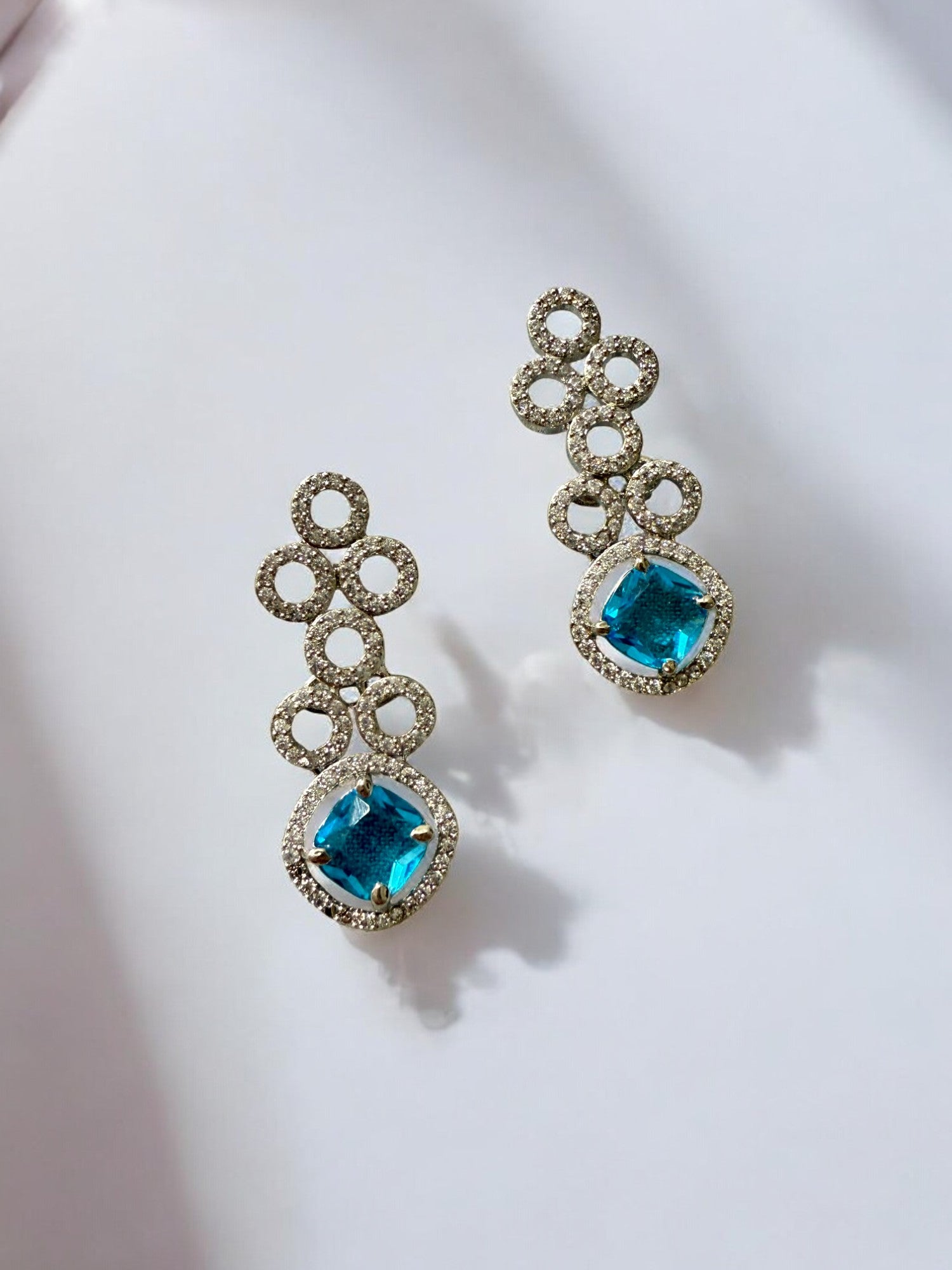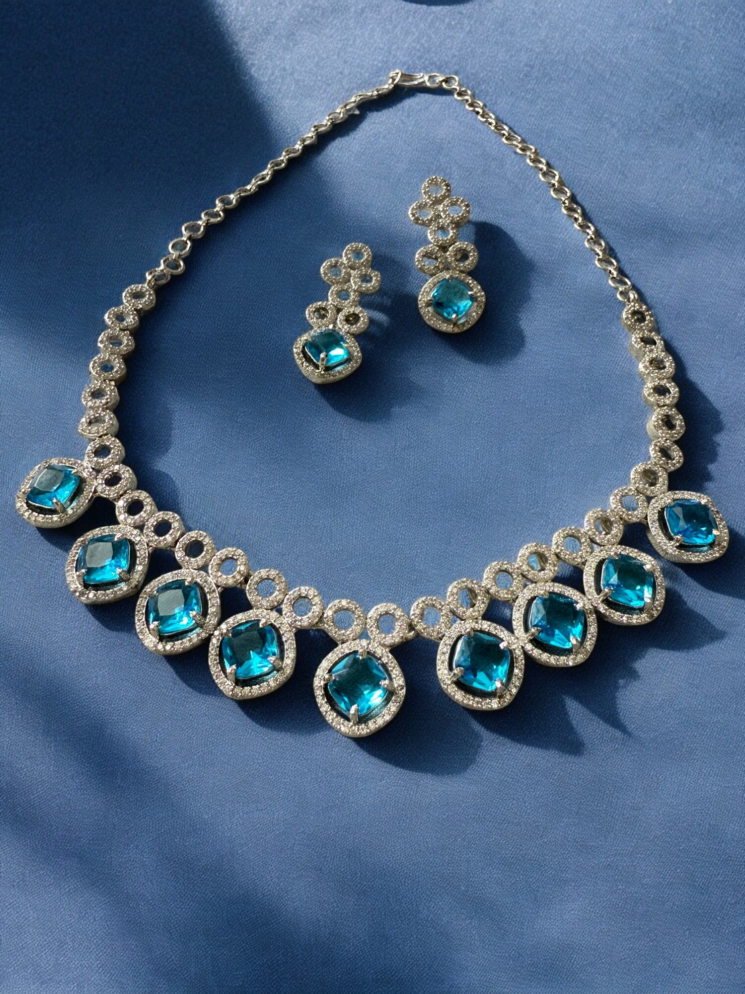 Blue Stone-Studded Necklace Set with Matching Earrings