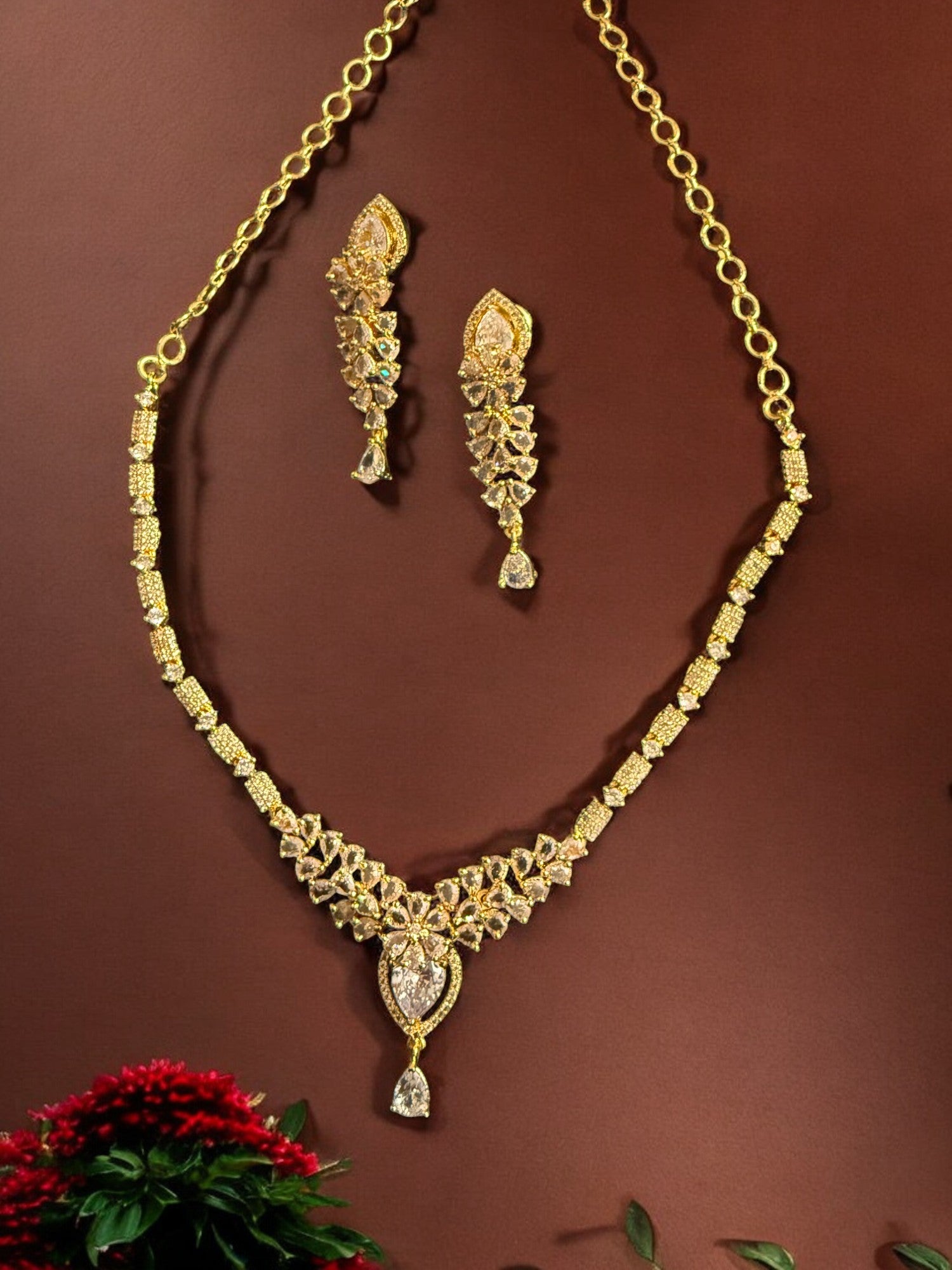 Gold Plated Stone-Studded Necklace Set with Matching Earrings
