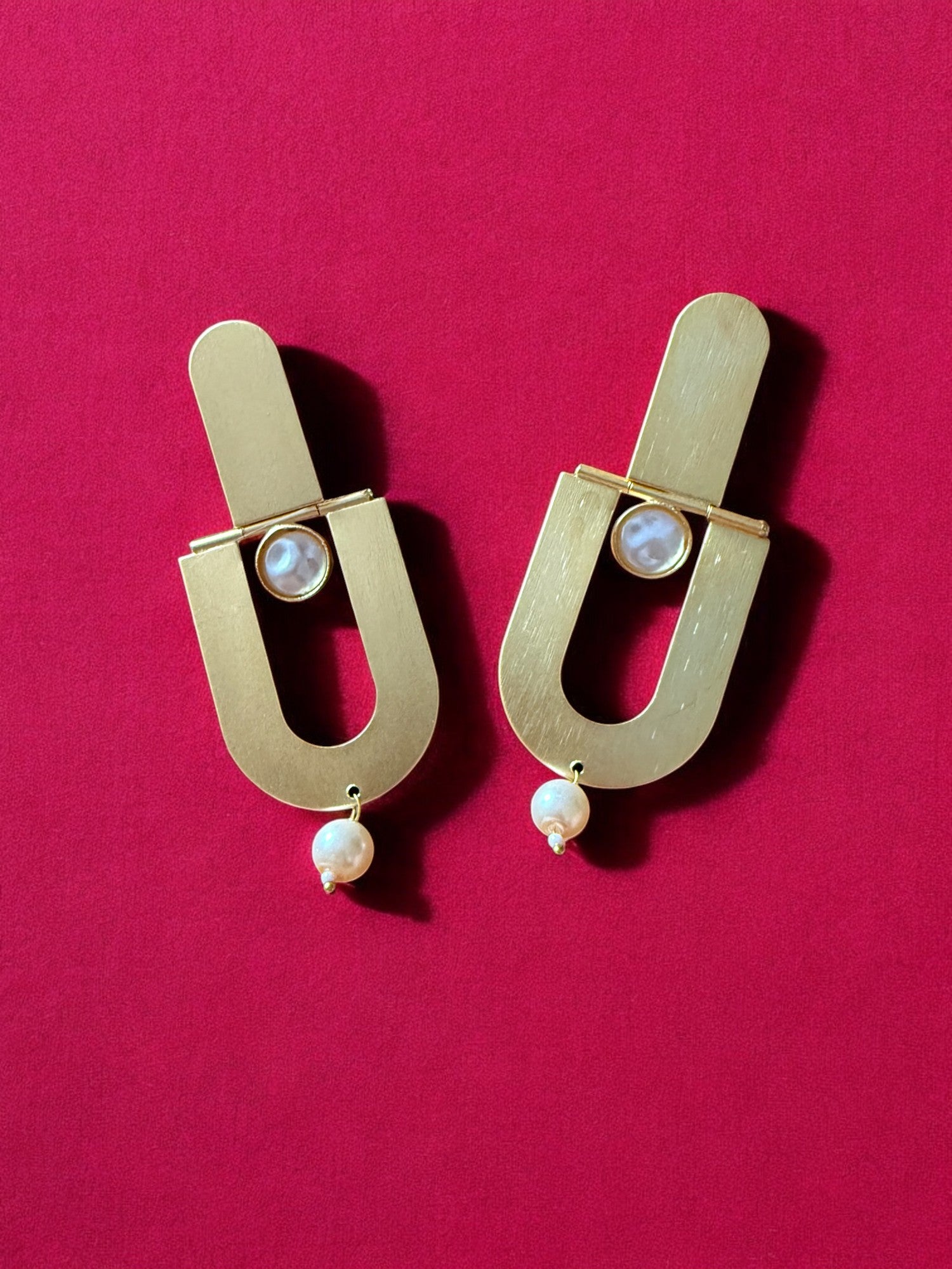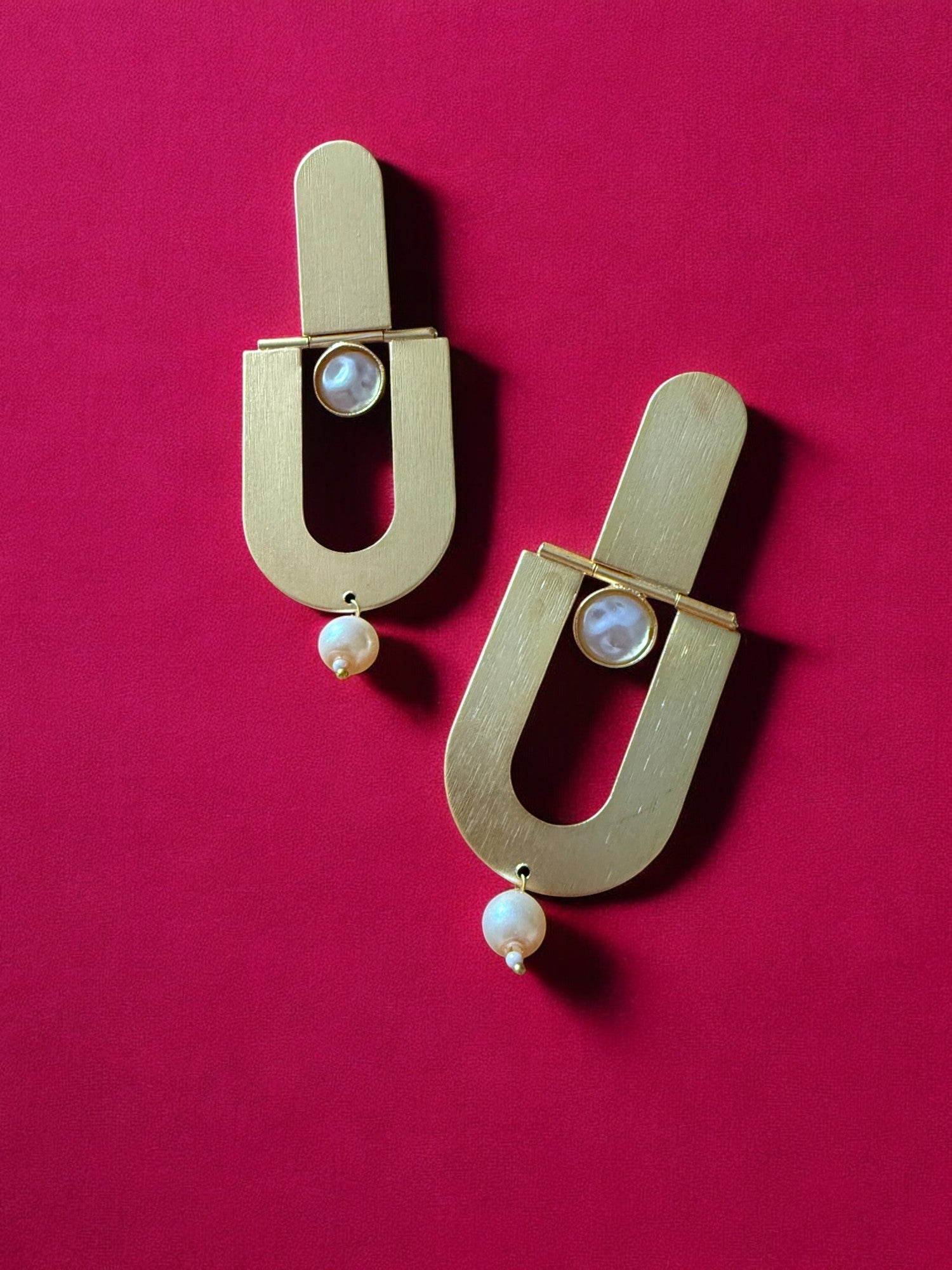 Handcrafted Contemporary Gold and Pearl Drop Earrings