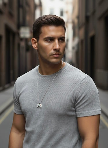 Men Silver Tone Stainless Steel Gaming Console Pendant Necklace