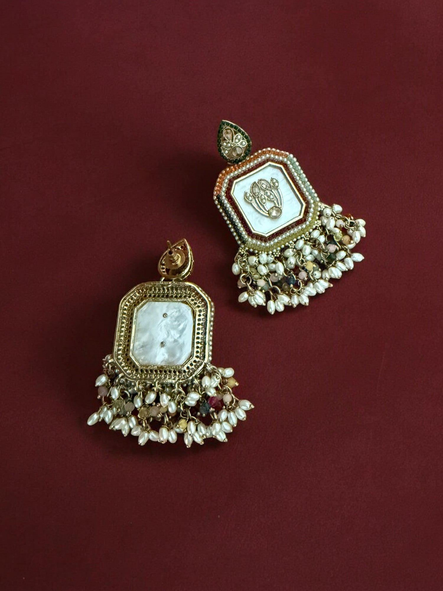 Multicolor Royal Kundan Pearl Dangler Earrings with Mother of Pearl Inlay