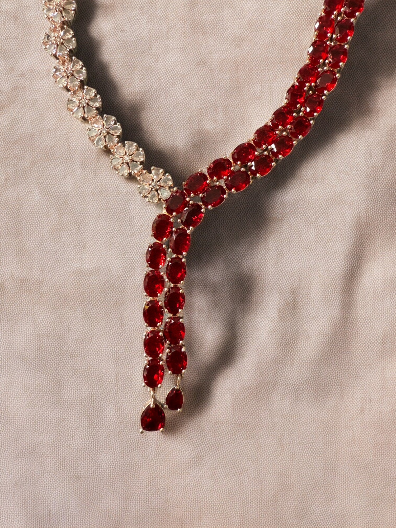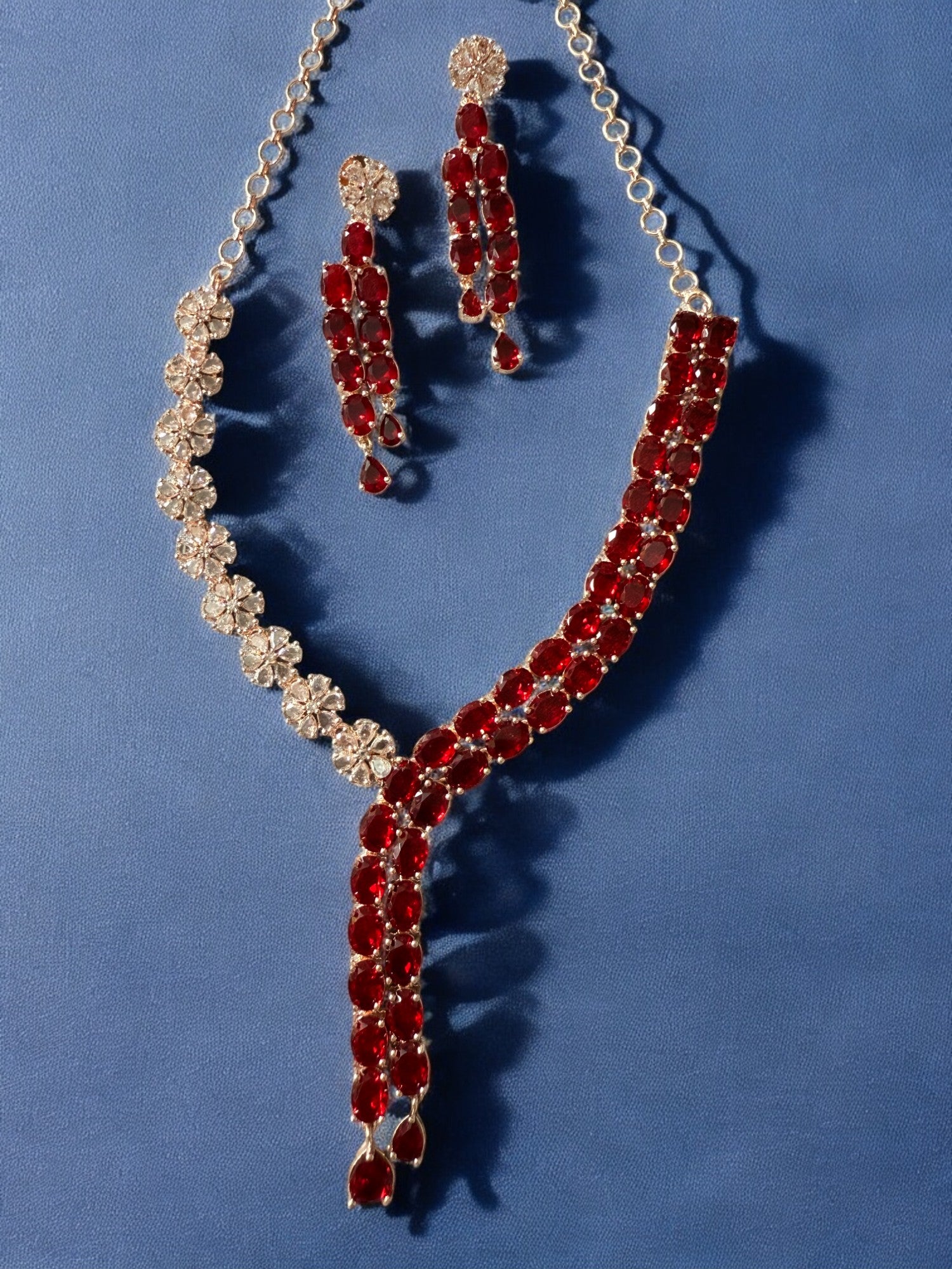 Rhodium Plated Statement Cubic Zirconia Stone Studded Jewellery Set