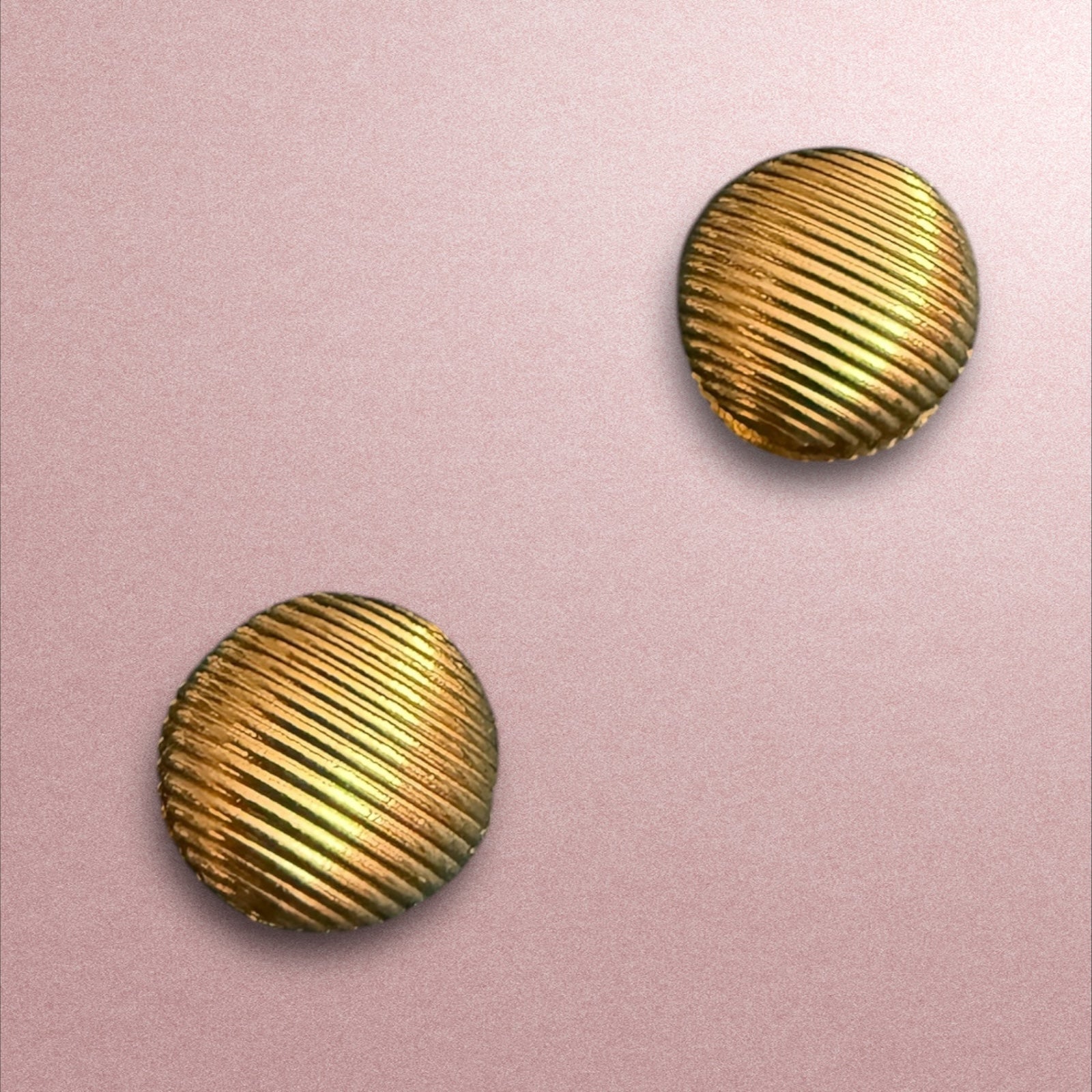 These elegant gold-tone stud earrings feature a finely ribbed texture for a sophisticated and versatile look. Perfect for everyday wear or adding a touch of understated luxury to any outfit.